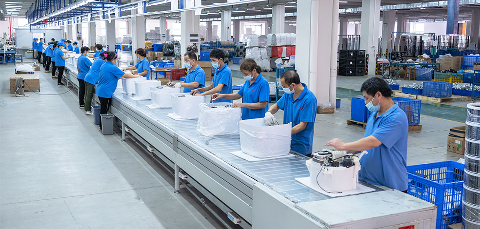 10萬㎡大型生產(chǎn)基地,26臺注塑機(jī),1條噴涂機(jī)器人涂裝生產(chǎn)線,4條機(jī)器人沖壓自動化生產(chǎn)線和3條組裝線 ,月產(chǎn)量高達(dá)50000臺