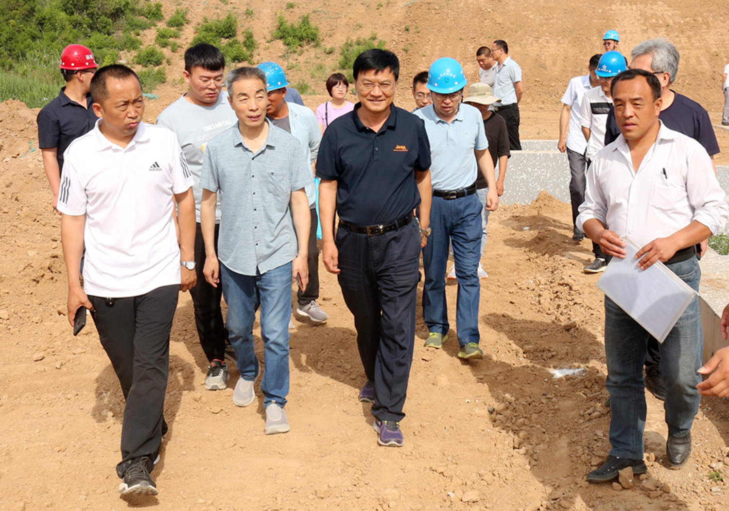 6月1日上午,公司董事長(zhǎng)崔作銘率領(lǐng)公司工程專家和相關(guān)人員赴姚暹渠空港段現(xiàn)場(chǎng)辦公,會(huì)同設(shè)計(jì)單位、項(xiàng)目公司、監(jiān)理單位和項(xiàng)目部,討論解決空港段施工中存在的渠堤綠化和道路排水等問題,并逐段踏勘了姚暹渠禹都段地形地貌和地表附著物現(xiàn)狀。